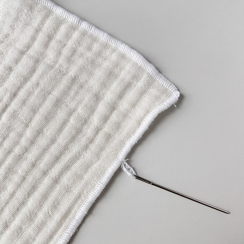 이대로 재봉해 주시면 이렇게 테두리가 얇고 쫀쫀한 키친크로스를 완성하실 수 있어요.