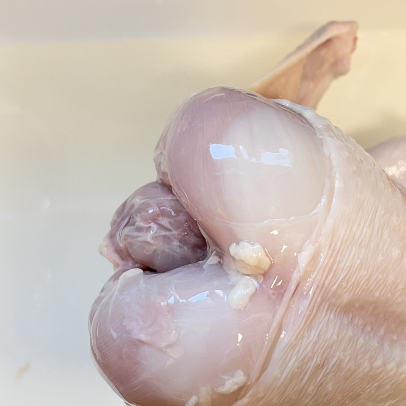 닭의 목뼈를 가슴 쪽으로 넣어 구멍을 막아주세요.