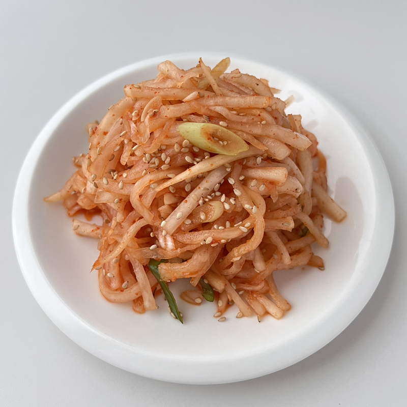 그냥 반찬으로 먹어도 맛있지만 나물과 비벼 먹으면 정말 엄지척 무생채예요.
